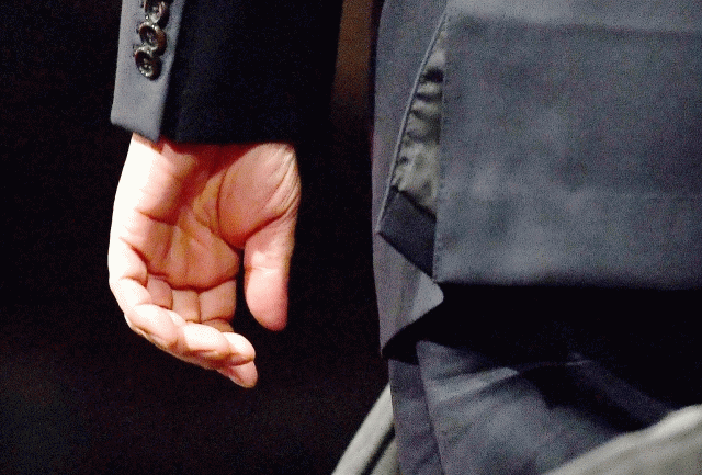 이날 KBS 스튜디오에서 열린 토론회에서 윤 전 총장의 손바닥은 깨끗했다.